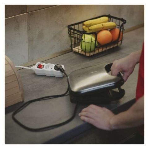 Bílý prodlužovací přívod, 2 zásuvky s dětskými clonkami, vypínačem, délkou 3 m. Průřezem vodiče 1 mm2. Vhodný pro maximální zátěž 10 A max.Při montáži na stěnu je nutné použít vrut se zápustnou hlavou PZ max. průměr 2,5–3 mm, délka 30–40 mm. V případě použití jiného průměru hrozí poškození plastové části otvoru. Pokud dojde k poškození plastové části otvoru, prodlužovací přívod nepoužívejte.