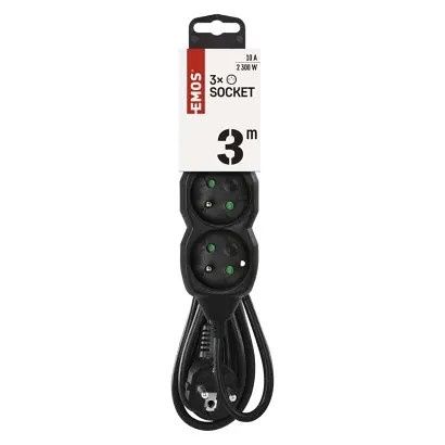 EMOS Prodlužovací kabel 3 m / 3 zásuvky / černý / PVC / 1 mm2