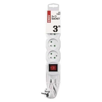 EMOS Prodlužovací kabel 3 m / 3 zásuvky / s vypínačem / bílý / PVC / 1 mm2
