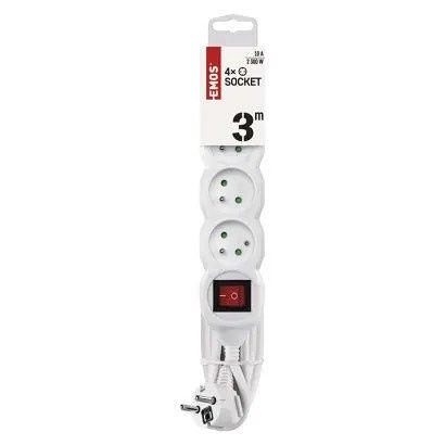 EMOS Prodlužovací kabel 3 m / 4 zásuvky / s vypínačem / bílý / PVC / 1 mm2