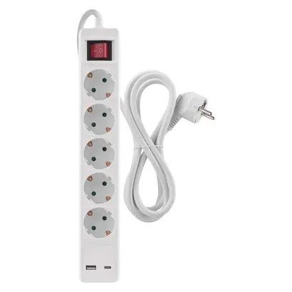 Prodlužovací přívod s vypínačem. 250V~/16A max. 5 zásuvek s dětskými clonkami - SCHUKO systém. USB A+C 3,4 A, 17 W max. Délka přívodního kabelu 3 m. Vodič H05VV-F3G 1,5mm2.Výhody produktuMax. zátěž 3 680 W.