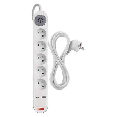EMOS Prodlužovací kabel 3 m / 5 zásuvky / s vypínačem / bílý / 1×USB-A + 1×USB-C / 1,5 mm2