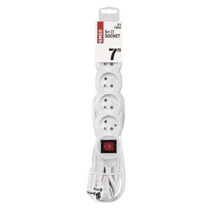 EMOS Prodlužovací kabel 7 m / 5 zásuvek / s vypínačem / bílý / PVC / 1 mm2