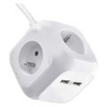 Prodlužovací přívod ve tvaru kostky se 4 zásuvky (250 V~, 16 A, 3 680W) a 2mi USB porty (max.2,1 A), délkou připojovacího kabelu 1,9 m nabízí ideální funkční a elegantní řešení do Vaší domácnosti, kancelářských prostor. Součástí balení je držák pro snadné upevnění na stůl. Dětské clonky jsou samozřejmostí u všech zásuvek.Spotřeba 0,1 W bez zátěže.Výhody produktuIdeální a funkční řešení, kompaktnost. USB výstup.