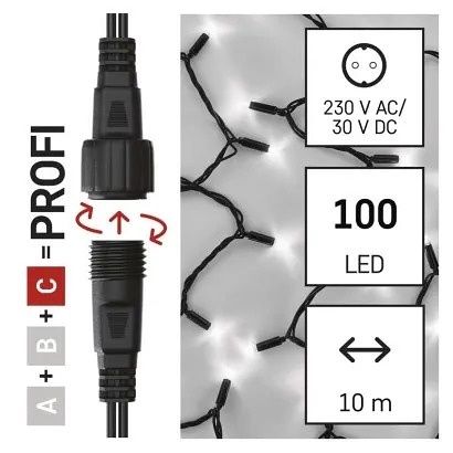 EMOS Profi LED spojovací řetěz černý, 10 m, venkovní i vnitřní, studená bílá