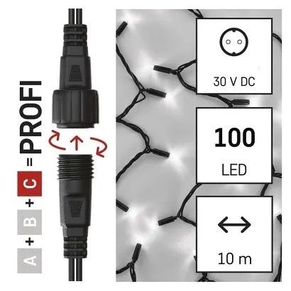 EMOS Profi LED spojovací řetěz černý, 10 m, venkovní i vnitřní, studená bílá