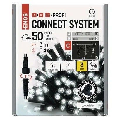 EMOS Profi LED spojovací řetěz bílý – rampouchy, 3 m, venkovní, studená bílá