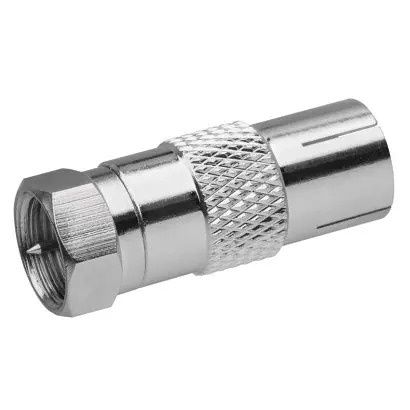 Redukce F-vidlice s IEC zásuvkou M5850. Redukce je určena k napojení na koaxiální kabel.