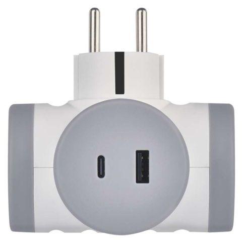 EMOS Rozbočovací zásuvka 2×, 1×USB-A+1×USB-C, bílo-šedá