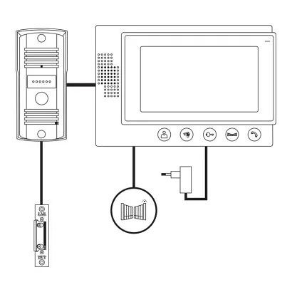 Jednoduchá sada videovrátného. Obraz je zobrazován na velký 7" barevný LCD. Přístroj je napájen pomocí přiloženého adaptéru na 12 V. Zařízení umožňuje obsluhu dveřního zámku a pojezdu brány. Výhody produktuVelký LCD displej, snadná instalace, jednoduchá obsluha, ovládání 2 vstupů.