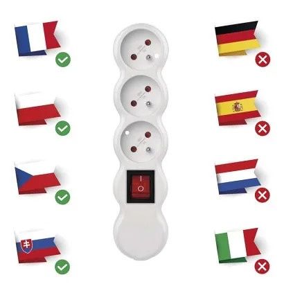 - počet zásuvek: 3× 2P + PE