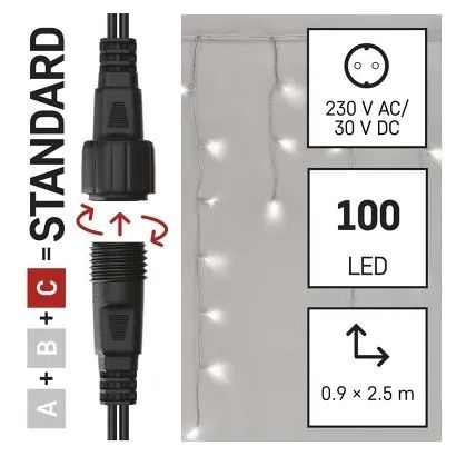 EMOS Standard LED spojovací vánoční řetěz – záclona, 1x2 m, venkovní, studená bílá