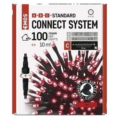 EMOS Standard LED spojovací vánoční řetěz, 10 m, venkovní i vnitřní, červená