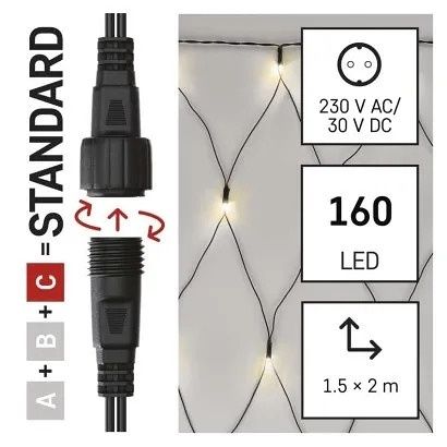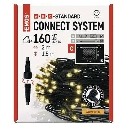 EMOS Standard LED spojovací vánoční řetěz – síť, 1,5x2 m, venkovní, teplá bílá