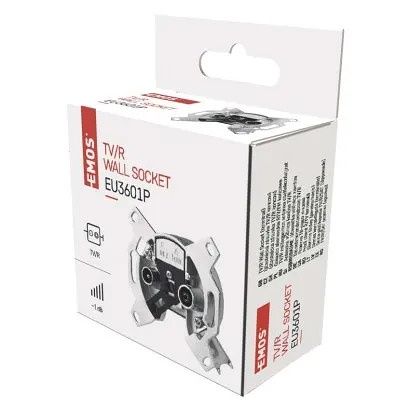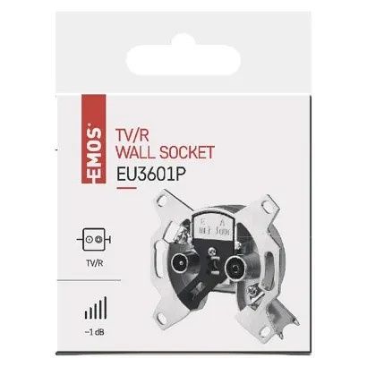 Účastnická zásuvka EU 3601 koncová s útlumem 1 dB a zdířkami pro TV + Rádio. Účastnická zásuvka propojuje např. anténu s televizí, satelitem nebo set-top-boxem. Zásuvka není průchozí pro stejnosměrné napětí.