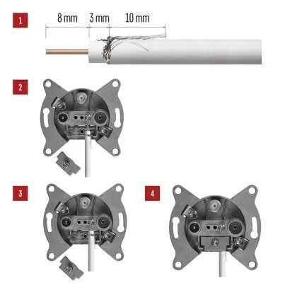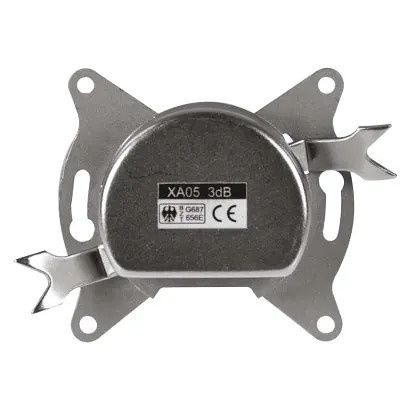 Účastnická zásuvka EU 3303 satelitní koncová s útlumem 3 dB a zdířkami pro TV + Rádio + SAT. Účastnická zásuvka propojuje např. anténu s televizí, satelitem nebo set-top-boxem. SAT zdířka průchozí pro stejnosměrné napětí a lze ji také využít pro průchod napájení předzesilovače v terestrické anténě.