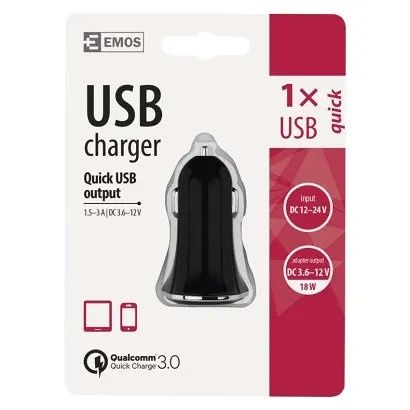 Univerzální nabíjecí USB adaptér do auta pro mobilní telefony, smartphony, tablety a další zařízení. Možnost rychlonabíjení u kompatibilních zařízení s procesory Qualcomm. Maximální vybavenost bezpečnostními a ochrannými elektronickými prvky. Výhody produktuQUICK charging - rychlejší nabíjení zařízení až o 80 %.