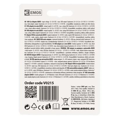 EMOS Univerzální USB adaptér do auta 3A (18W) max.
