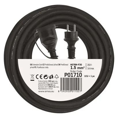 EMOS Venkovní prodlužovací kabel 10 m / 1 zásuvka / černý / guma-neopren / 230 V / 1,5 mm2
