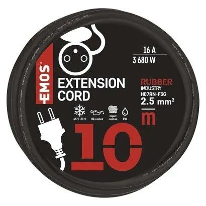 EMOS Venkovní prodlužovací kabel 10 m / 1 zásuvka / černý / guma-neopren / 230 V / 2,5 mm2