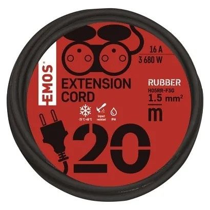 EMOS Venkovní prodlužovací kabel 20 m / 2 zásuvky / černý / guma / 230 V / 1,5 mm2