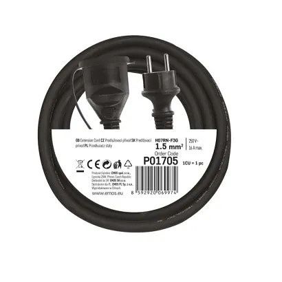 EMOS Venkovní prodlužovací kabel 5 m / 1 zásuvka / černý / guma-neopren / 230 V / 1,5 mm2