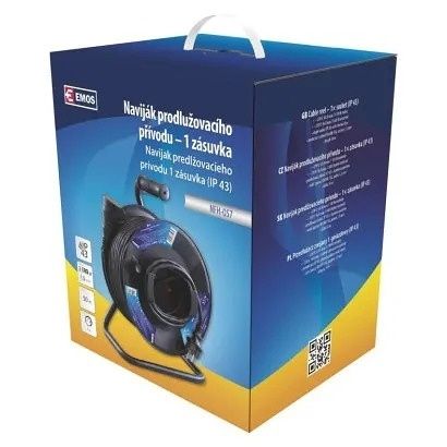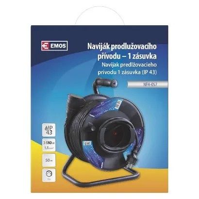 EMOS Venkovní prodlužovací kabel na bubnu 50 m / 1 zásuvka / černý / guma / 230 V / 1,5 mm
