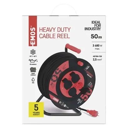 EMOS Venkovní prodlužovací kabel na bubnu 50 m / 4 zás. / černý / guma-neopren / 230V / 2,