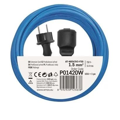 EMOS Weatherproof prodlužovací kabel 20 m / 1 zásuvka / modrý / PVC / 230 V / 1,5 mm2