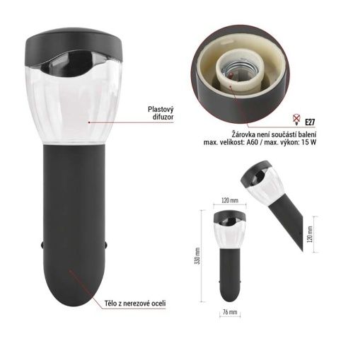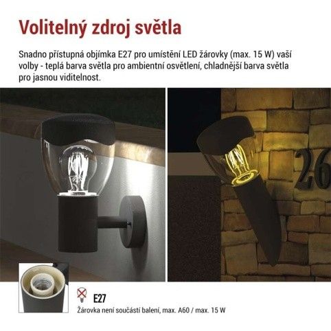 EMOS Zahradní nástěnné svítidlo ARTEO, 12 x 12 x 33 cm, 1 x E27, 15 W