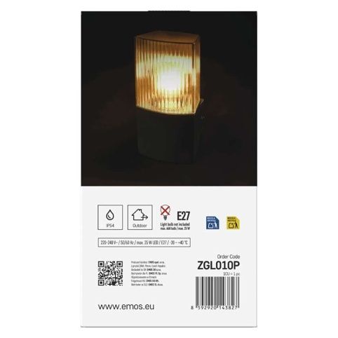 EMOS Zahradní nástěnné svítidlo LANA, 11,7 x 10,6 x 21,8 cm, 1 x E27, 25 W