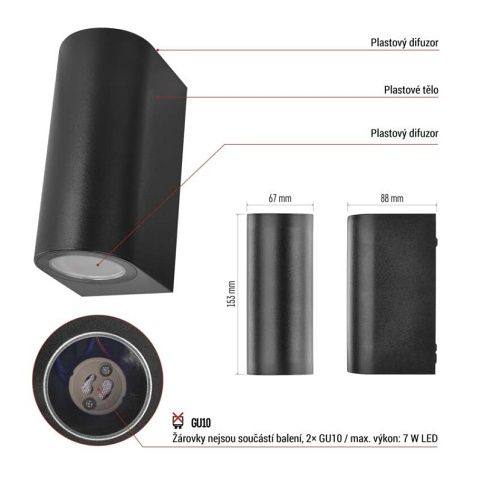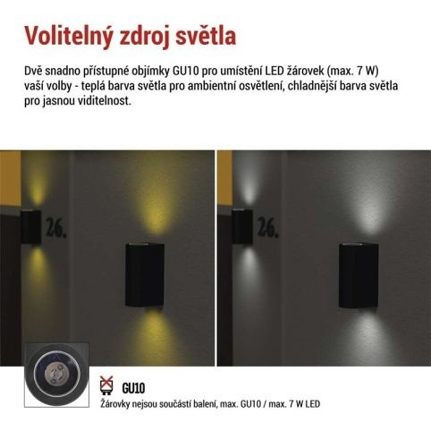 EMOS Zahradní nástěnné svítidlo OCULUS, 8,8 x 6,7 x 15,3 cm, 2 x GU10, 35 W