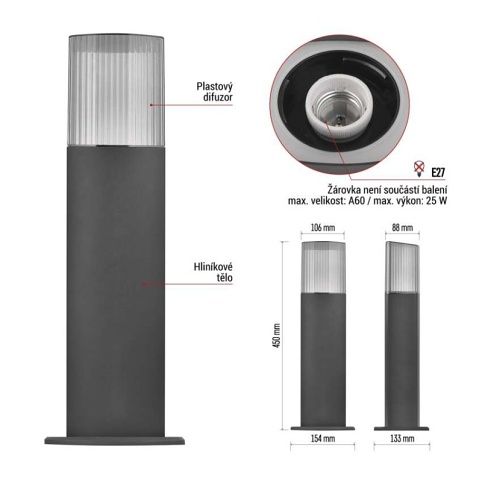 EMOS Zahradní sloupkové svítidlo LANA, 15,3 x 13,3 x 45 cm, 1 x E27, 25 W