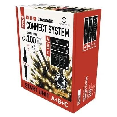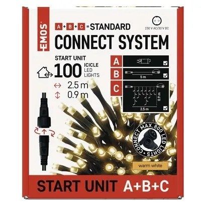 EMOS Základní sada pro spoj. řetězy Standard – rampouchy, 2,5 m, venkovní, teplá bílá, čas