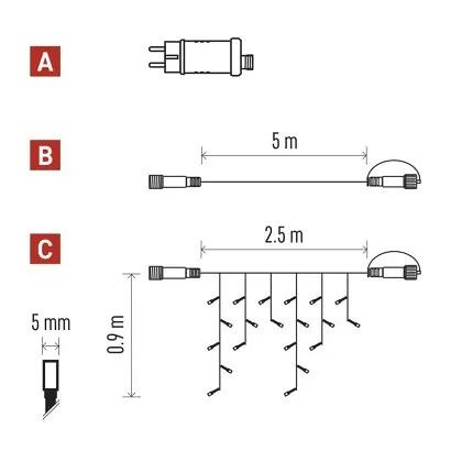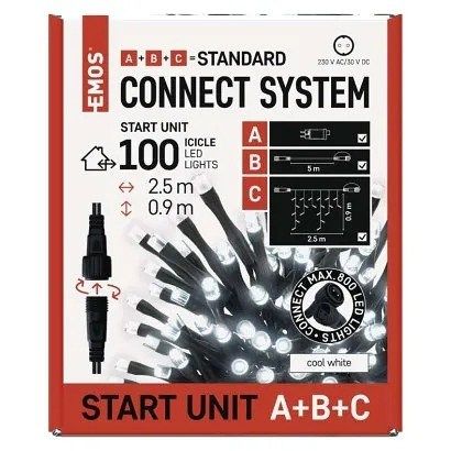 EMOS Základní sada pro spoj. řetězy Standard – rampouchy, 2,5m, venkovní, studená bílá, ča