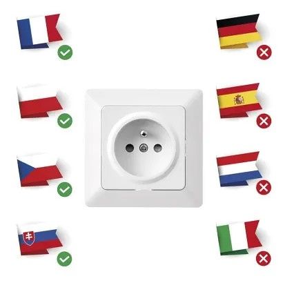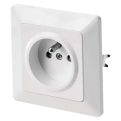 Kvalitní jednonásobná FRENCH zásuvka s integrovanou dětskou clonkou. Montáž do krabice. IP20. Šroubové svorky.