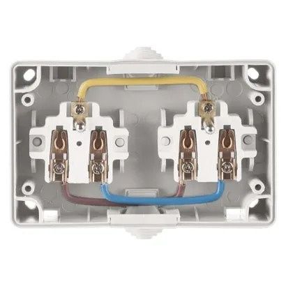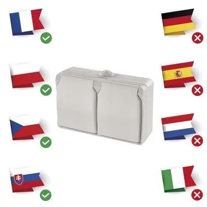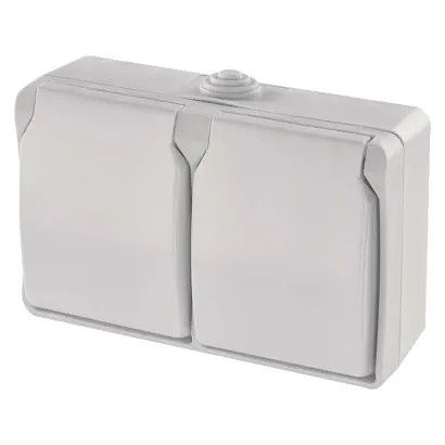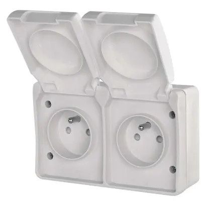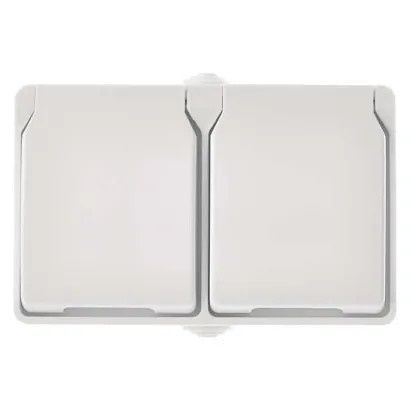 Kvalitní nástěnná voděodolná FRENCH dvojzásuvka s ochraným víčkem. S propojením zásuvek.