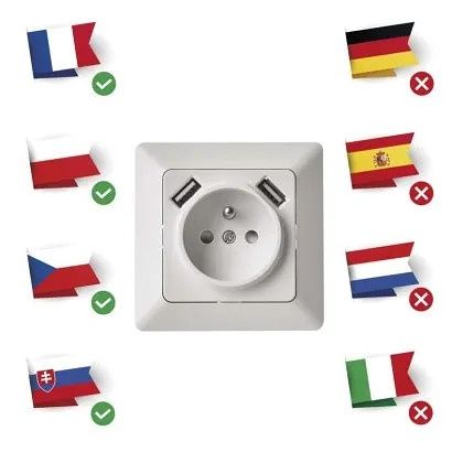 - produkt: zásuvka jednonásobná s ochranným kolíkem a USB výstupem 2,1 A max.