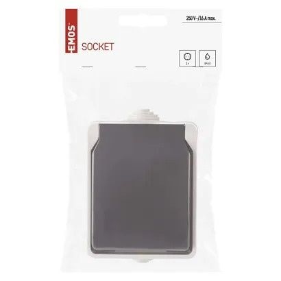 EMOS Zásuvka SCHUKO nástěnná, šedo-černá, IP44