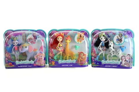 Dej své představivosti volný průběh a vydej se do kouzelného světa spolu s těmito panenkami a zvířátky Enchantimals™! Panenky Enchantimals™ jsou roztomilými postavami, které spojuje výjimečný vztah s jejich kamarády zvířátky. Vyber si z několika panenek Enchantimals™ a jejich zvířecích kamarádů. Všechny 15 centimetrové panenky jsou oblečené do oblečků skládajících se z odnímatelné sukýnky a botek v zářivých barvách a s výstředními potisky. Jejich nejlepší přátelé zvířátka se, stejně jako panenky, pyšní rozkošnými rysy a doplňky, jako jsou kožešinové detaily, otěže a sladěná ozdoba hlavy. Sesbírej je všechny, postav svět Enchantimals™ a vyprávěj své vlastní kouzelné příběhy. Věk 4+