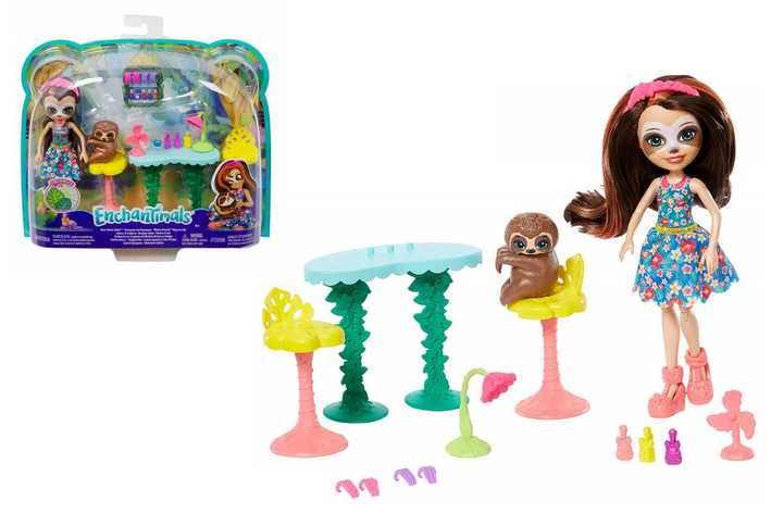 Tématické balení Enchantimals nabízí 15-ti cm panenku, napůl holčičku a napůl zvířátko, s oblečky v krásných zářivých barvách a doplňky sladěnými se svým roztomilým zvířátkem. Balení obsahuje panenku, dvě zvířátka různých velikostí a tématické doplňky. Vyraž s Bren Medvědovou na piknik, oslav narozeniny s Fanci Plameňákovou nebo si užij pyžamovou párty s Ohanou Sovičkovou.