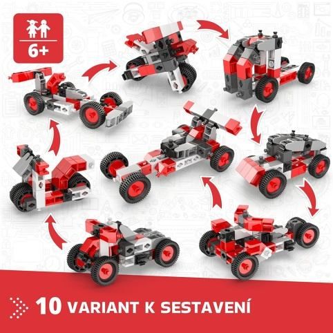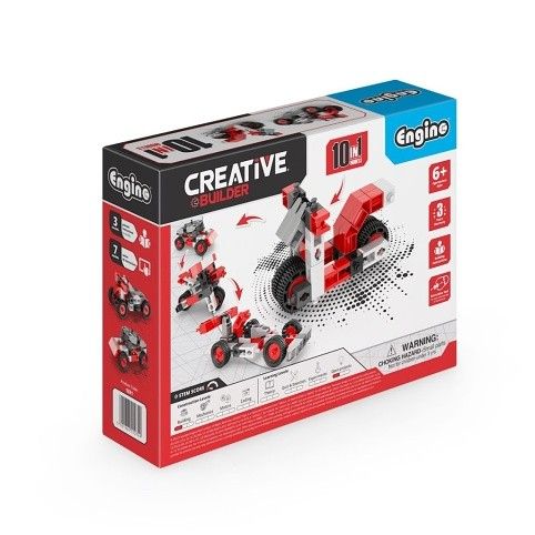 Stavebnice řady Engino Creative Builder podporují tvořivost a manuální zručnost dětí. Umožňují snadno a rychle přetvářet jeden model na druhý. Dle přiloženého návodu a mobilní aplikace krok po kroku snadno vytvoříte 10 různých modelů. Interaktivní aplikace Engino kidCAD® zobrazí modely ve 3D, které si můžete libovolně otáčet, prohlížet a upravovat. Kompatibilní s ostatními druhy stavebnic Engino. Vhodné od 6 let, vyrobeno na Kypru EU.