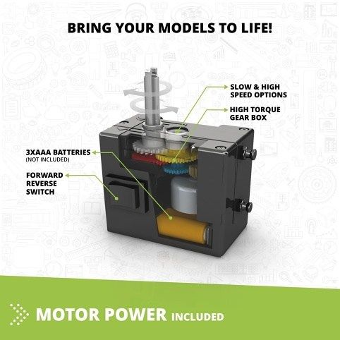 Pro nadšence do velkých staveb je tu Engino Mega Builds – Londýnské oko. Pomocí aplikace kidCAD® vytvoříte snadno krok po kroku tuto londýnskou ikonu o rozměru 80×70 cm. Díky motorku ji pak můžete rozpohybovat, zvolit si směr a rychlost otáčení kola. Výrobek vyžaduje 3 x AAA baterie (nejsou součástí balení). Kompatibilní s ostatními druhy stavebnic Engino. Součástí velký plastový box. Vhodné od 9 let, vyrobeno na Kypru EU. Na baterie: 3x AAA (nejsou součástí balení)