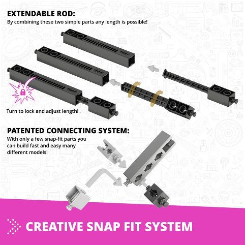 možnost sestavit 25 modelů, aplikace Engino kidCAD zobrazující 3D model