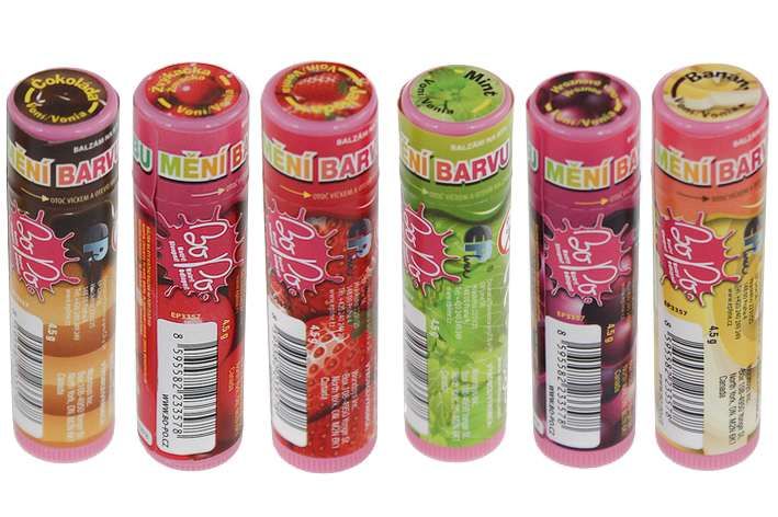 Tyto Bo-Po balzámy na rty mění barvu. Naneste si je na rty a sledujte, jak se vaše rty krásně zvýrazní. Pro děti od 3let.