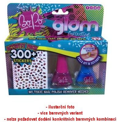 Užijte si ještě více zábavy s touto Bo-Po sadou. Nalakujte si své nehty a ozdobte je samolepkami. Uviditíte, jak budou vypadat originálně a cool. Je čas na změnu? Lak z nehtů jednoduše sloupněte a vyberte si jinou barvu a i jiné samolepky. Tyto Bo-Po laky lze jednoduše nanést na nehty a ještě snadněji je můžete sloupnout. Už žádný odlakovač! Bo-Po laky neobsahují acetylen. Lahvička je navržena tak, že se nevylije. Obsahuje: 2 Bo-Po laky, 3 archy samolepek. Pro děti pd 3let.