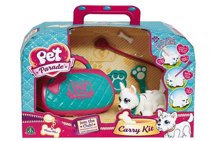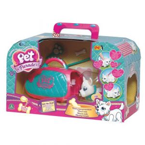 Zvířecí kamarád – pejska Pet Parade. Přitlačte na pejska prstem a tak je jednoduše ovládejte. I bez baterií dokáže uchopit kostičku či noviny. Pomocí vodítka půjde za vámi a při tom bude hýbat nohama, legračně se vlnit a pohybovat hlavou. Hračka určená především pro děvčata. Podívejte se i na ostatní sady Pet Parade a vyberte si tu nejvhodnější pro vás. Balení obsahuje: 1× pejsek, 1× taštička, 1× kostička, 1× vodítko, 1× samolepka na obojek, 1× hřebínek, 1× miska Rozměr balení:15×25×13 Věk 3+"
