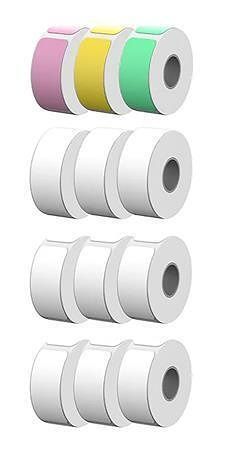 Balení obsahuje: 12 rolí etiket (1x zelená, 1x žlutá, 1x růžová, 9x bílá)