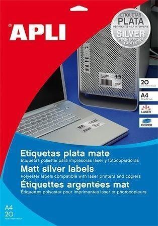 Etiketa, stříbrná, 63,5 x 29,6mm, zaoblené rohy, voděodolná, polyester, 540ks/bal., APLI