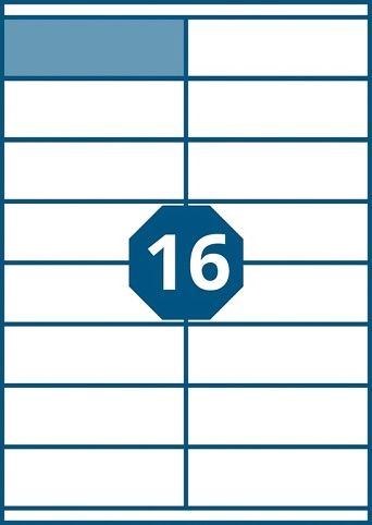 Print etikety se používají jako adresní štítky nebo k označení médií, výrobků, balení apod. Jsou univerzální a vhodné k potisku v laserových a inkoustových tiskárnách i kopírovacích strojích. barva: bílá rozměr etikety: 105,0 x 35,0 mm počet etiket na A4: 16 kusů počet listů v balení: 100 listů počet etiket v balení: 1600 kusů